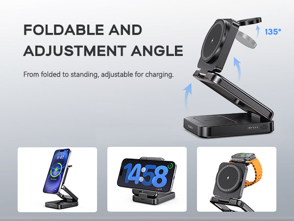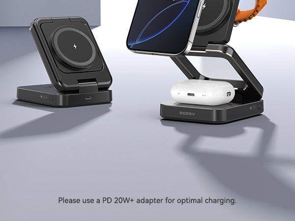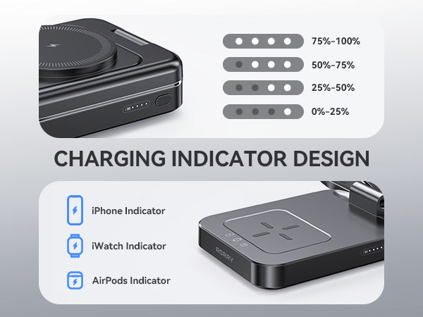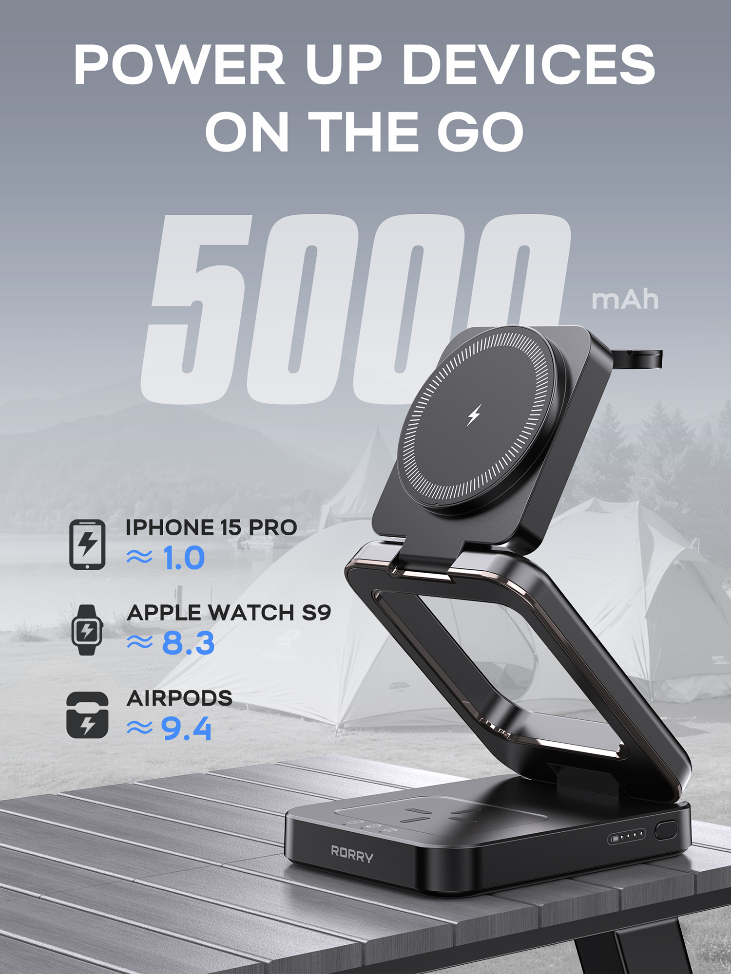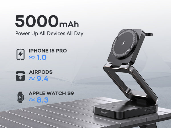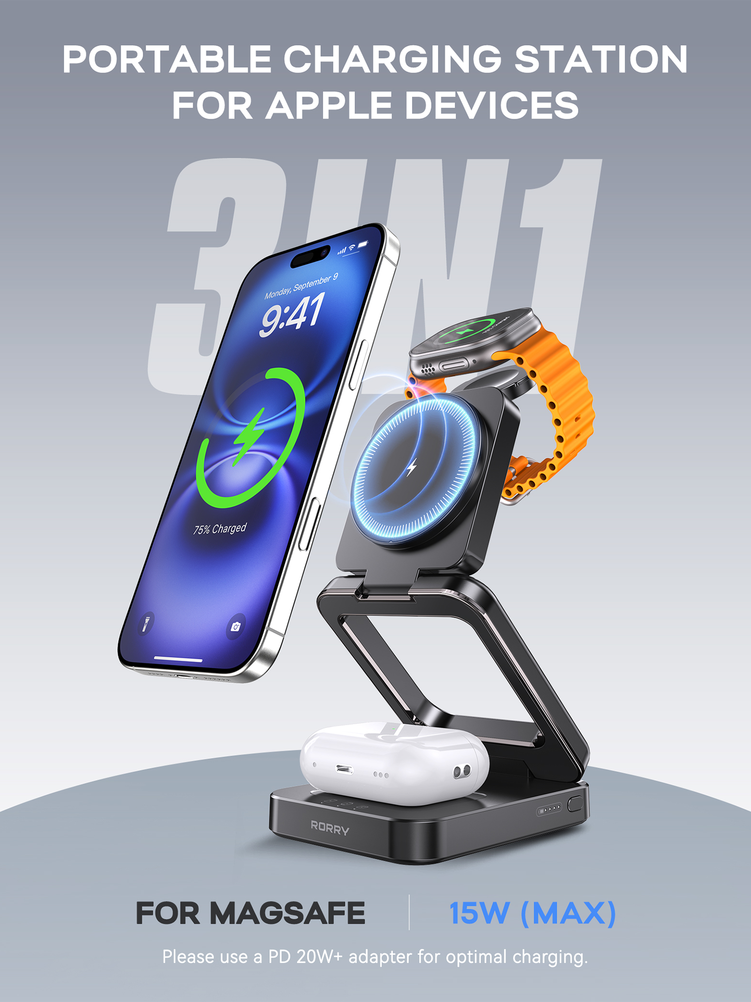 RORRY D17 5000mAh 3-in-1 Portable Charger for Apple Devices, Foldable Wireless Charging Station for iPhone 16/15/14/13/12, Apple Watch, and AirPods