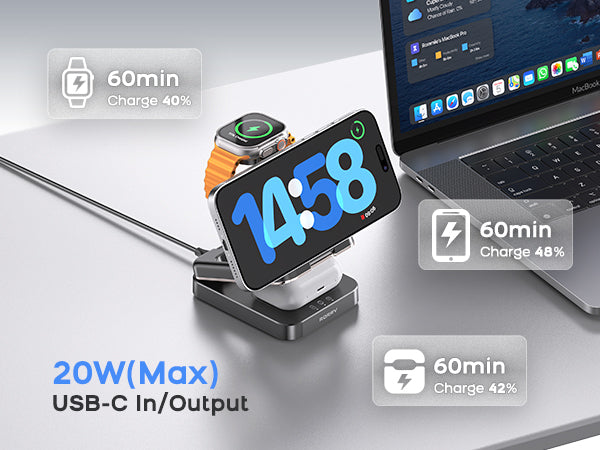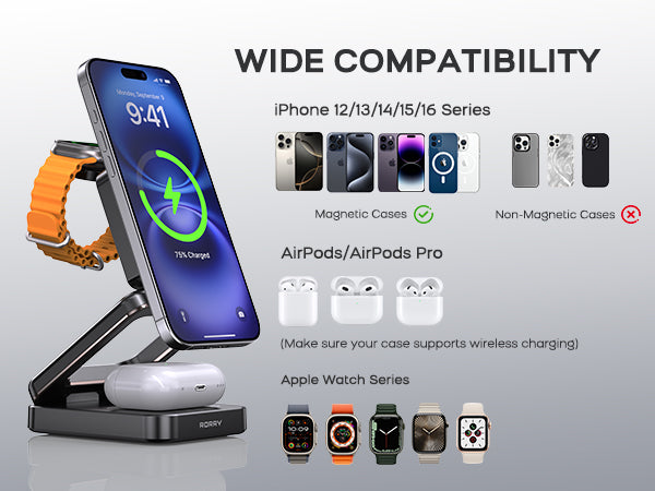 - 3-in-1 Charging Convenience – Wirelessly powers your iPhone, Apple Watch, and AirPods all at once. Say goodbye to tangled cords and multiple chargers.