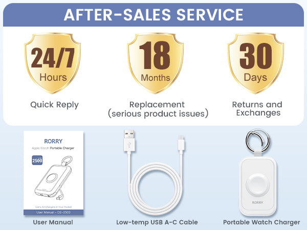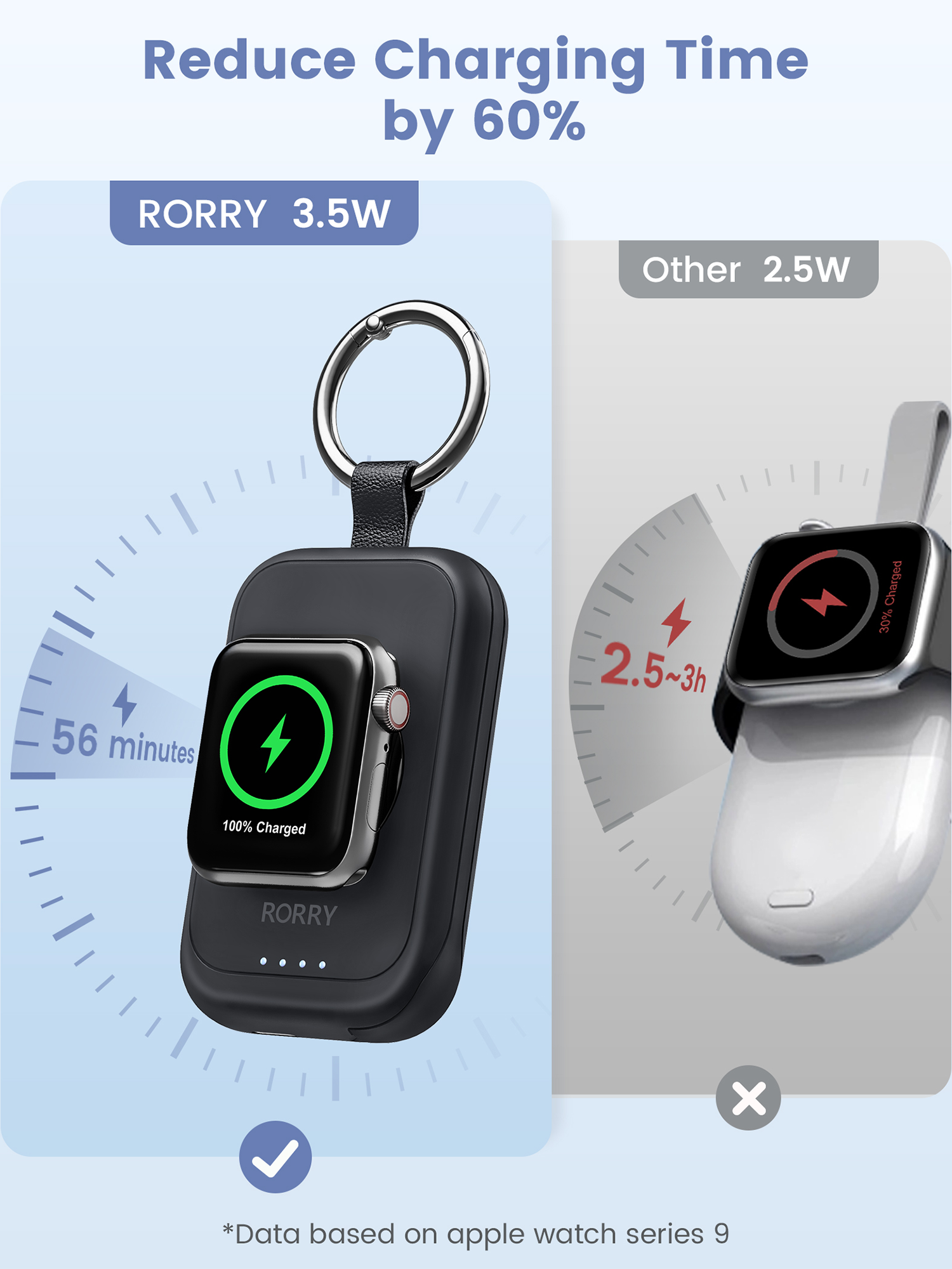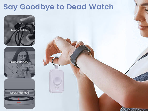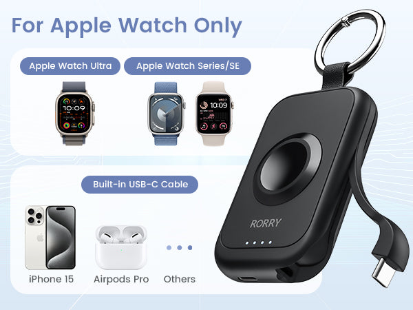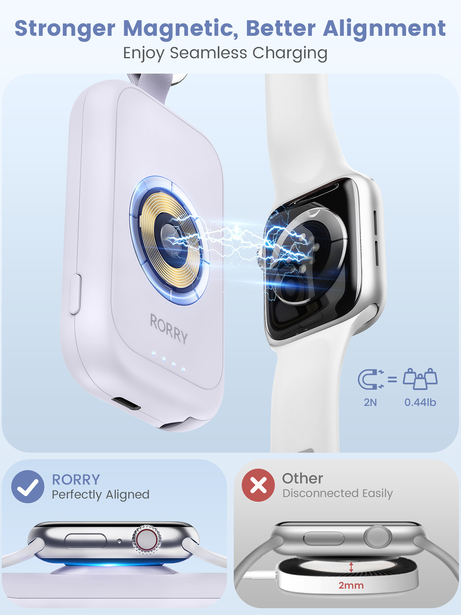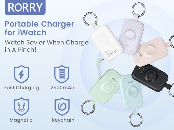 - Why RORRY Portable Charger for Apple Watch? Is your of iWatch always running out of juice? Constantly hunting for a power source? Tired of messy cables for iWatch while traveling? Say goodbye to those hassles with our sleek portable charger for Apple Watch