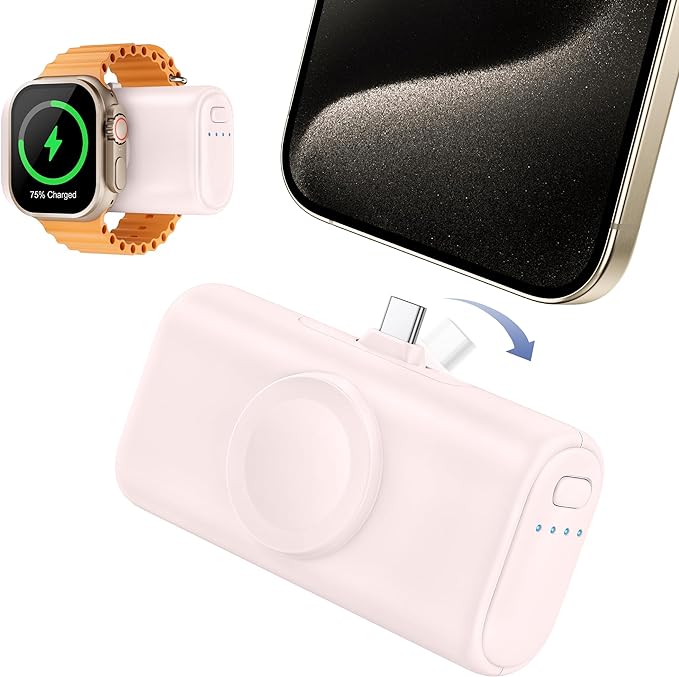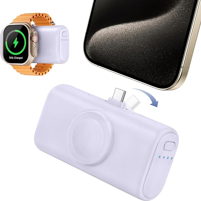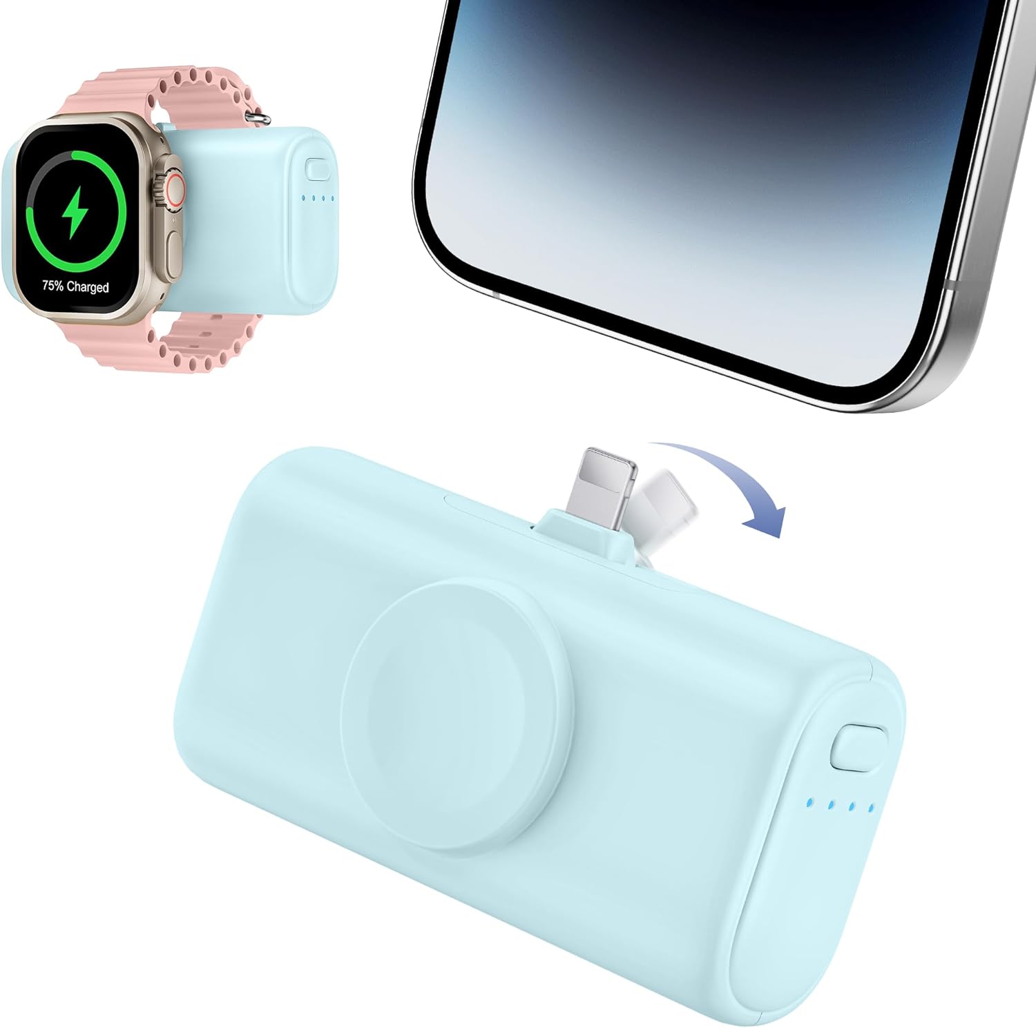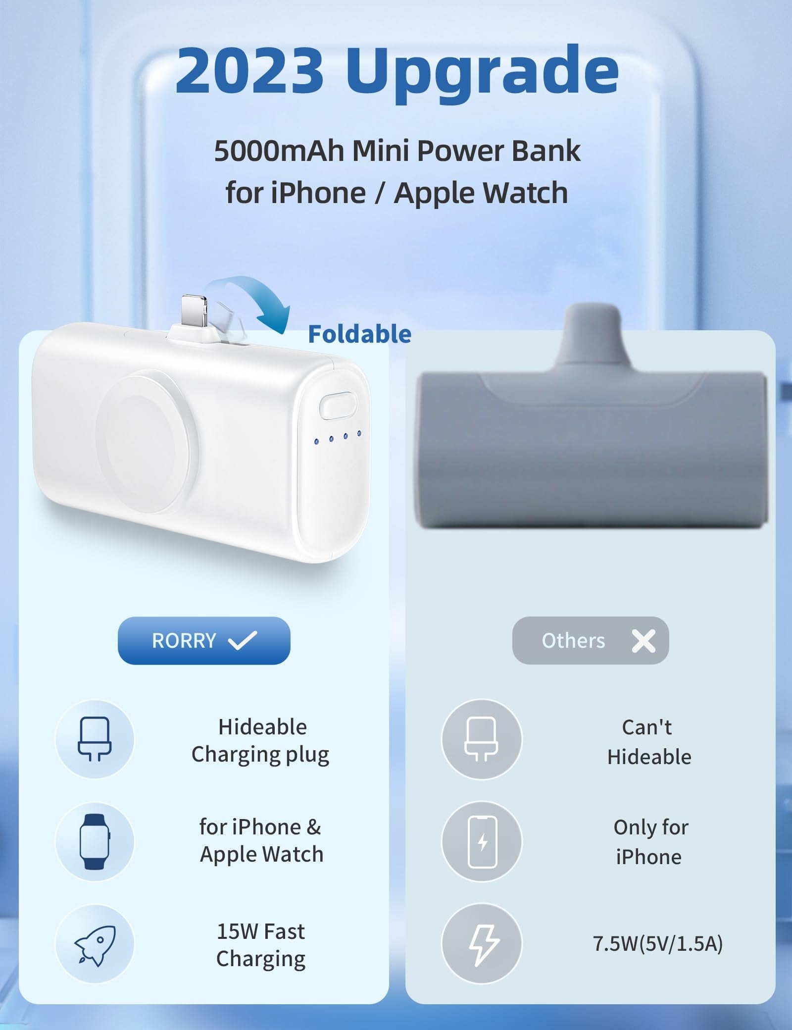 RORRY Mini Portable Charger for iPhone,5000mAh Small &Ultra-Compact 15W PD Fast Charging Power Bank Compatible with iPhone 15/14/13/12/11/XR/X/8 and Apple Watch Series 9/Ultra2/8/Ultra/7/6/5/4/3/SE
