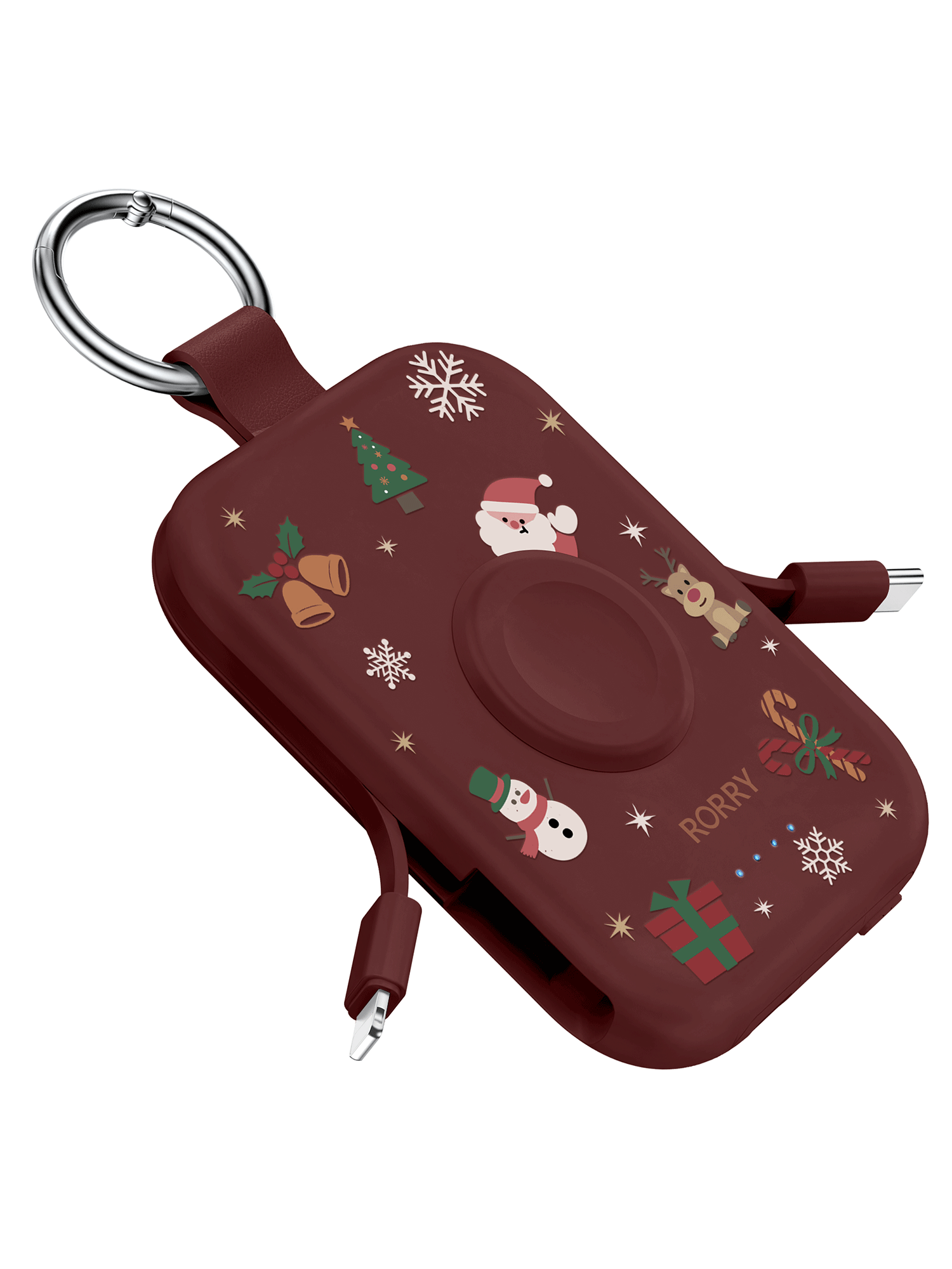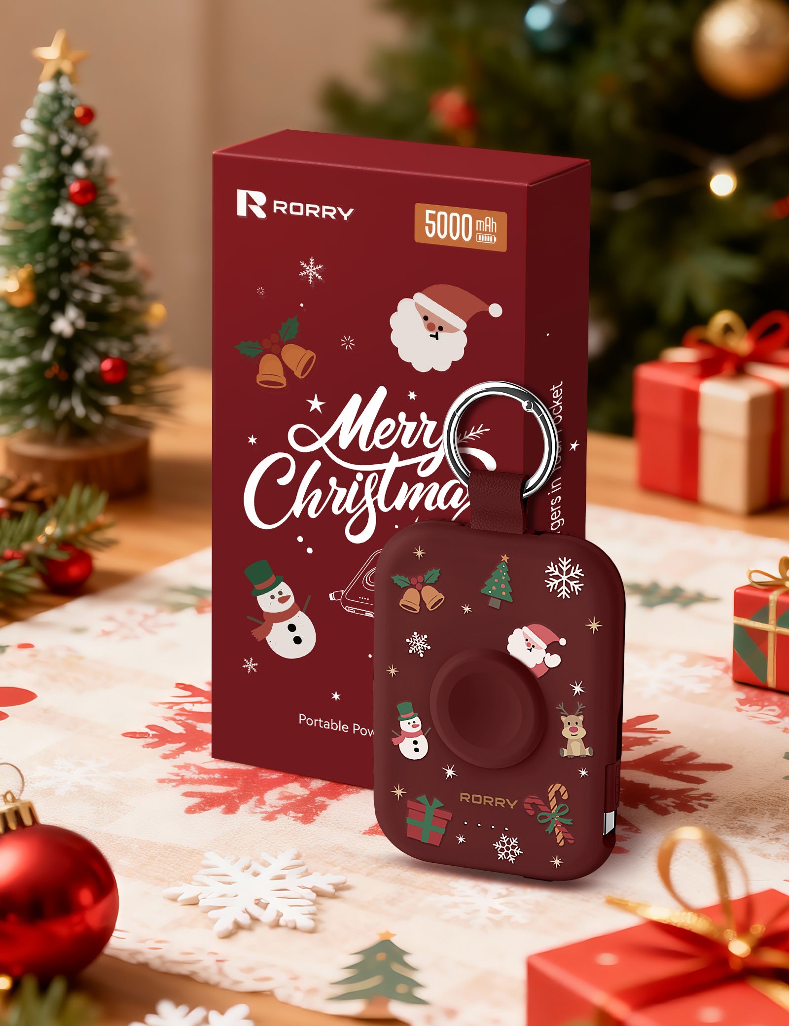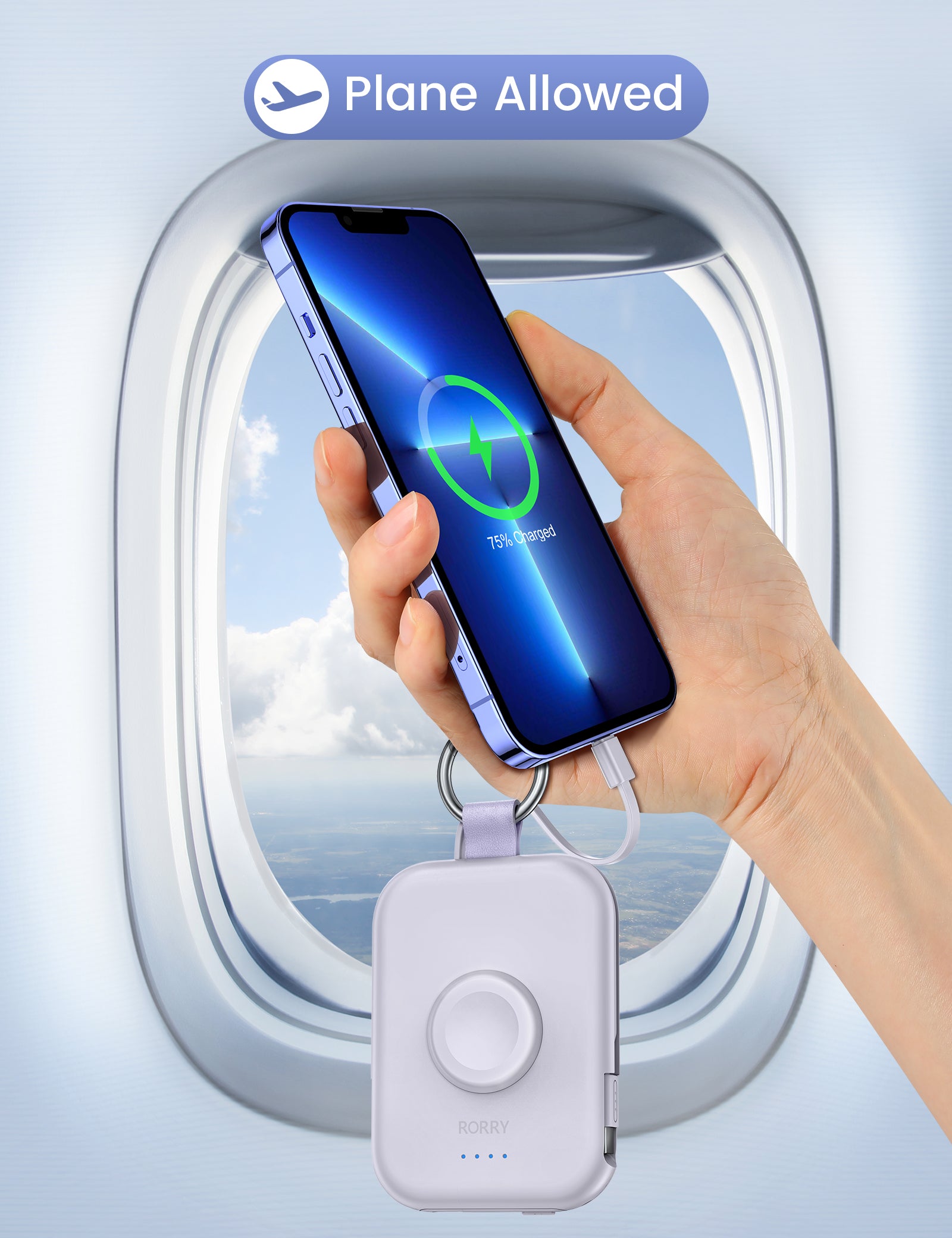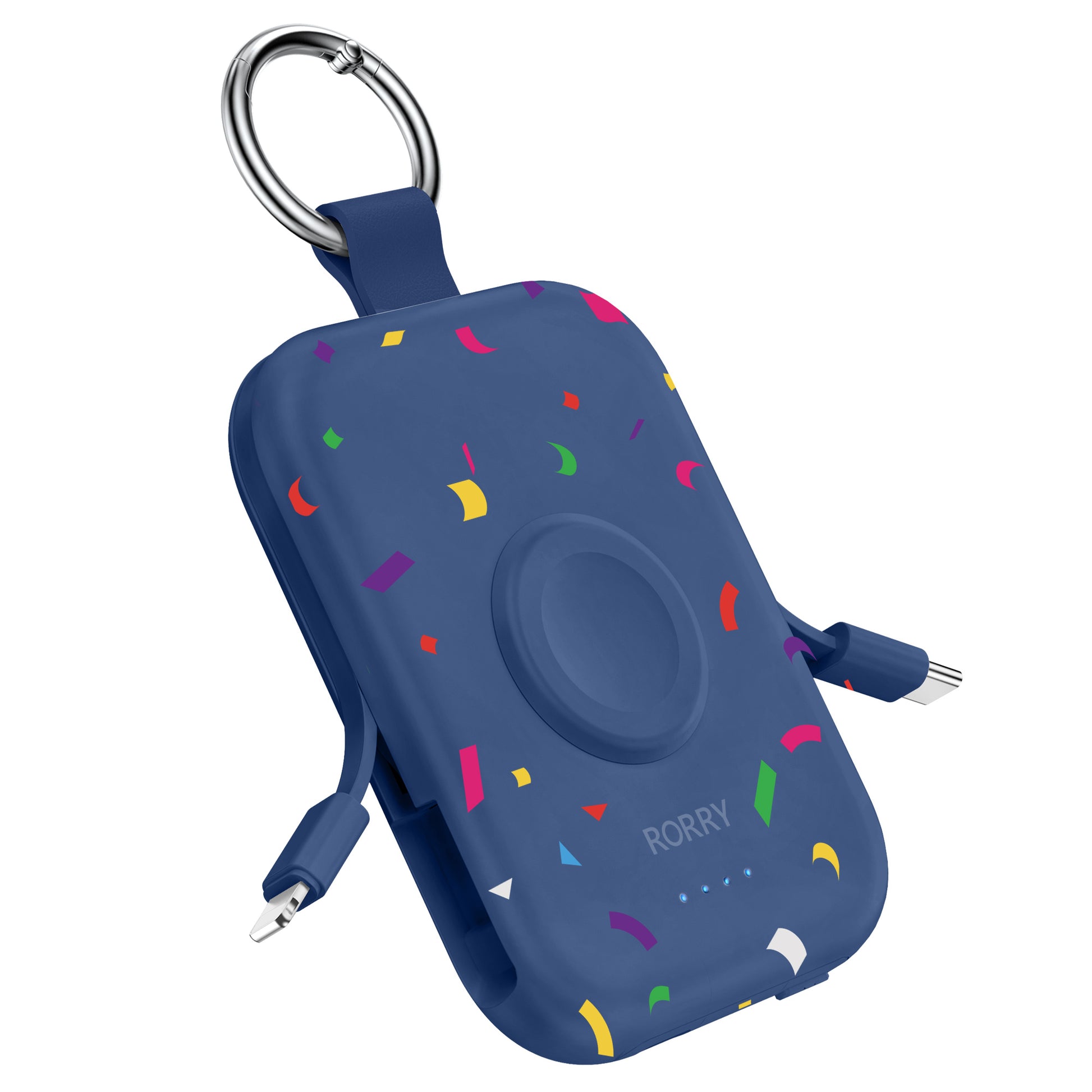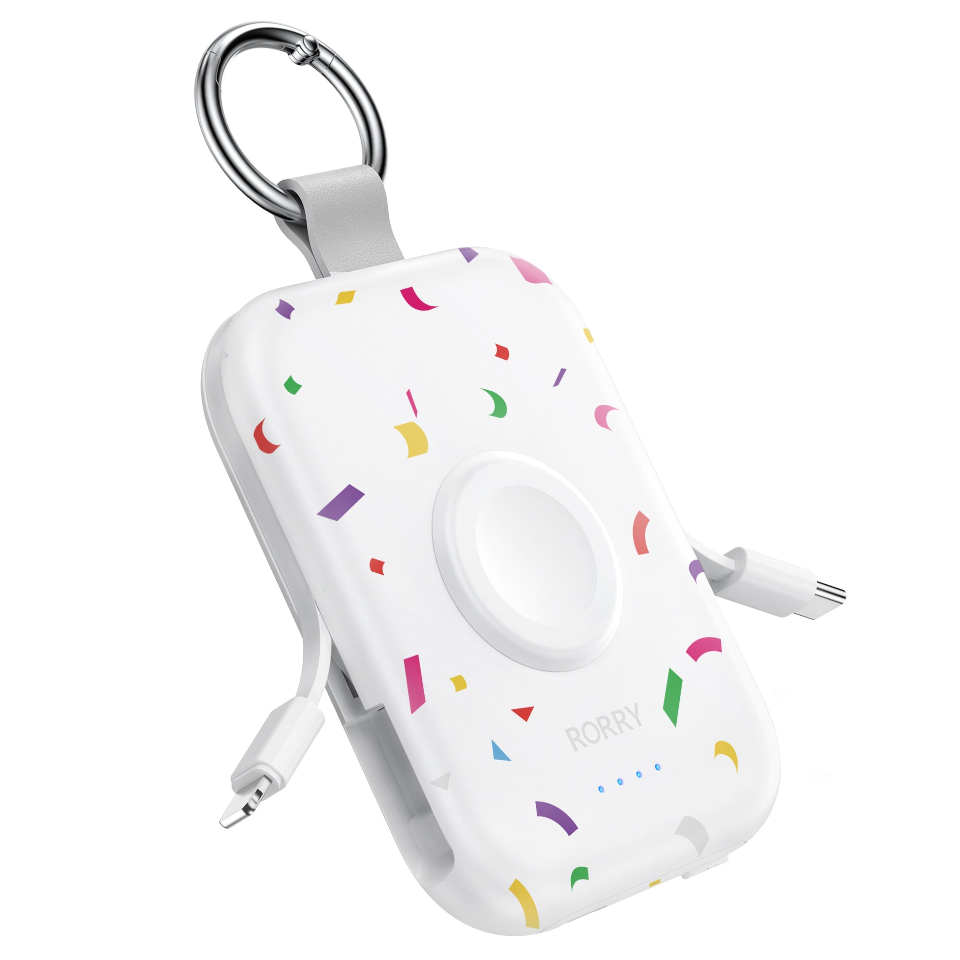 RORRY D2 5000mAh Portable Charger, Portable Charger Power Bank with Built-in Cables, Travel Keychain Battery Pack for Apple Watch Ultra 2/10/9/8/Ultra/7/6/SE/5, iPhone 16/15/14/13/12