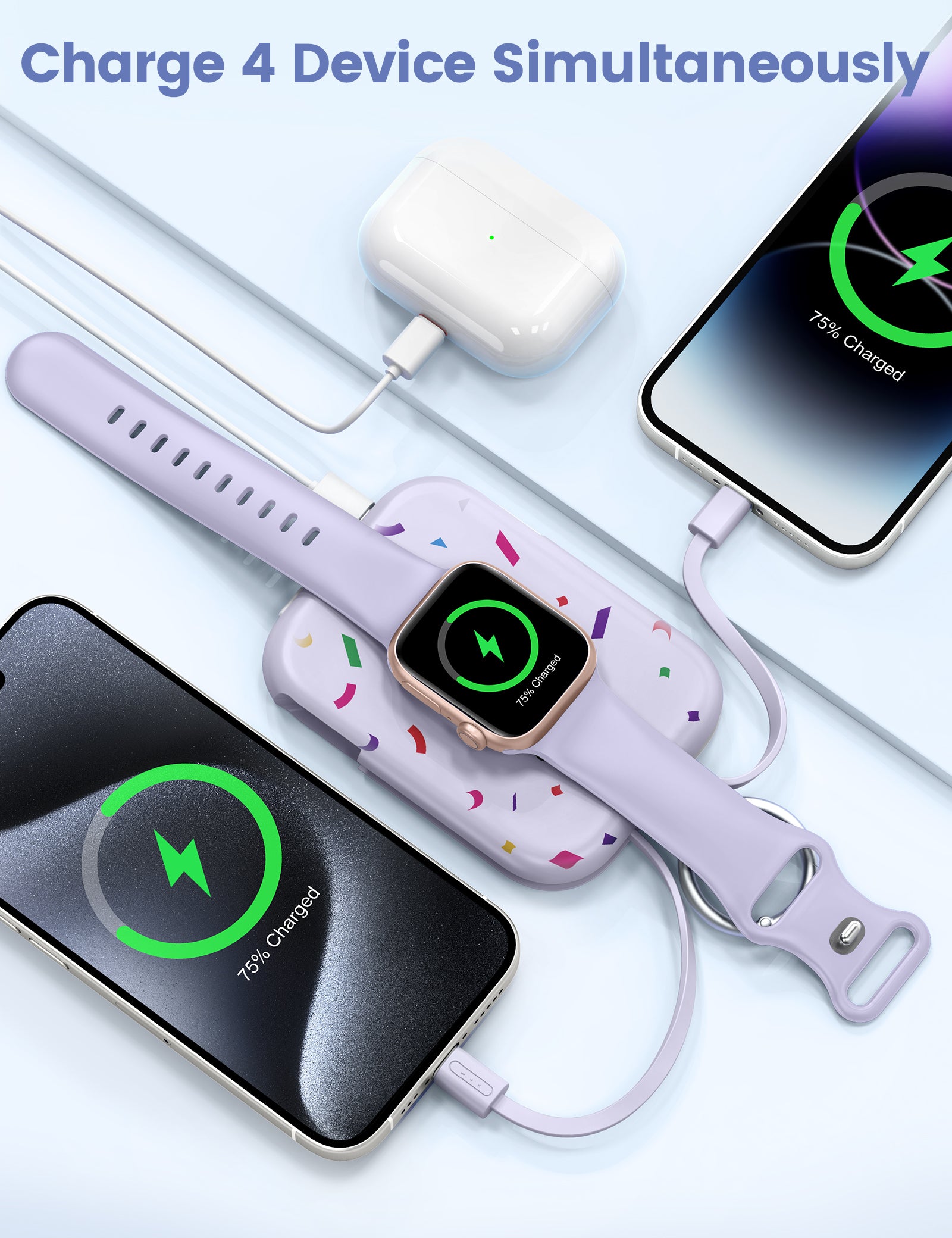 - Powerful 5000mAh Capacity: Charges Apple Watch 7–10 times, iPhone 15 once, and AirPods 6–8 times. Fully recharges in just 2.5 hours.