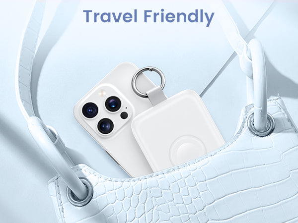 - Travel Must-Have: Weighing in at about 7.3 ounces (yup, just like the iPhone 14 Pro!), this compact charger (4.33“ x 2.83” x 0.83”) slips easily into your purse. with a handy hanging loop, you can sport it on your finger or backpack—traveling just got a whole lot easier!
