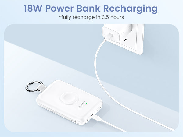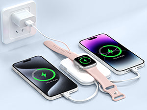 Charge for iPhone and for Apple Watch while recharging the power bank, great for over-night charging.