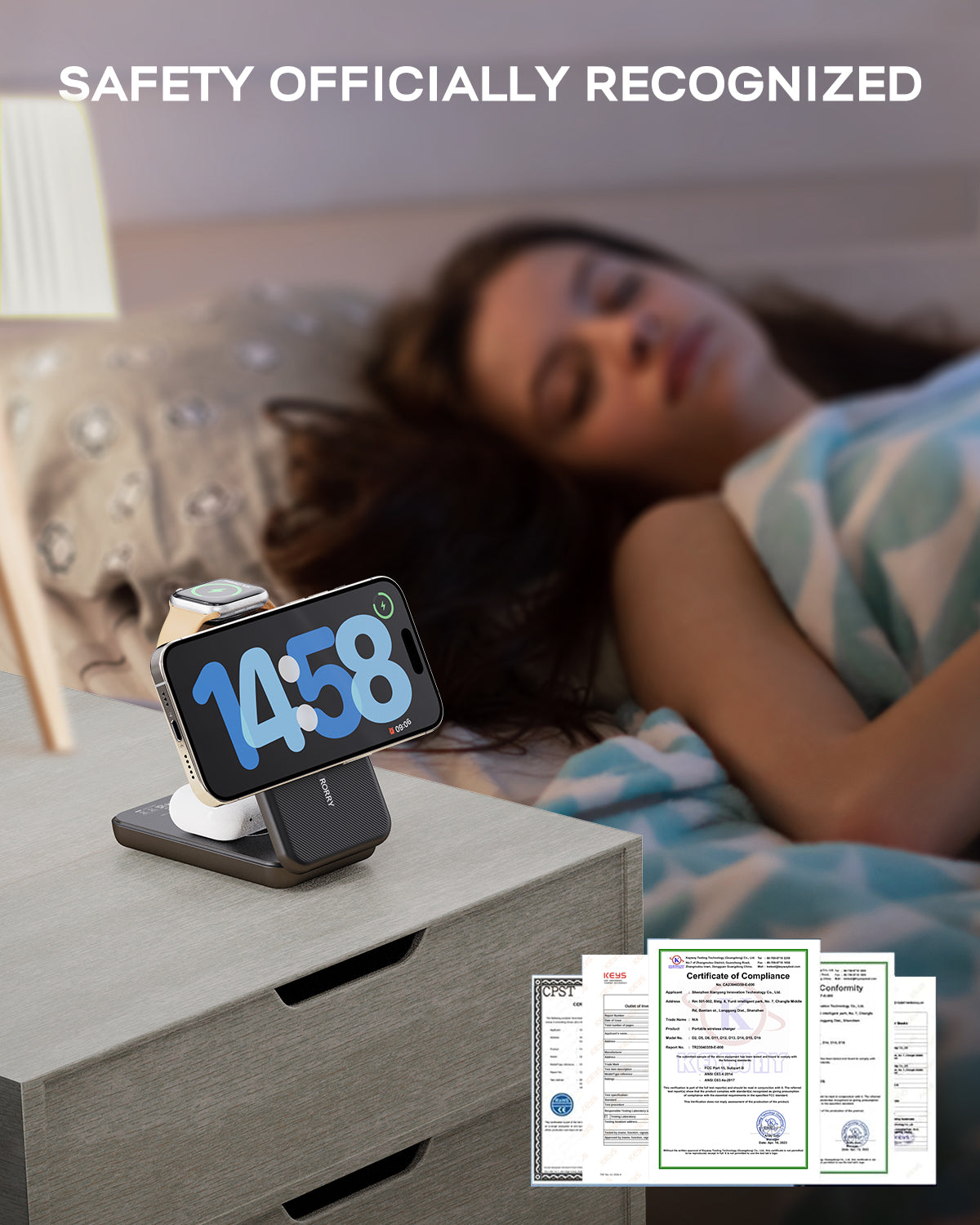 - 10,000mAh Capacity Power Anywhere: With a capacity of 10,000mAh, this portable charger station is perfect for short trips. It can fully charge for iPhone 16 Pro up to 1.8 times or for Apple Watch Series 9 up to 17-20 times, for AirPods Pro up to 10-12 times, ensuring you stay powered wherever you go!